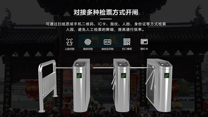 KMS-SSZ3景區三輥閘,采用無刷電機,磨損小,運行穩定,闖關報警,防尾隨,通行速度快,不僅造型美觀、大方、高端,還能方便集成IC卡、ID卡、二維碼、指紋、人臉等識別設備,能實現通道的智能化、高效率管理。