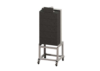 適合在射擊實驗室內配合驗槍,測速等使用,采用美國進口專利設計的鈦橡膠塊配合背部保護鋼板和移動支架,移動支架下半部采用5cm厚阻彈膠板覆蓋,可以阻擋口徑達7.62mm的槍支和M885A1式5.56毫米增強性能步槍的射擊,阻彈靶重量為180公斤。
