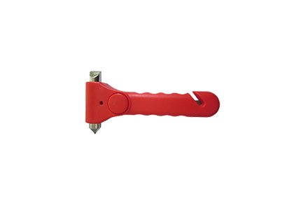 遇到緊急情況,取下消防錘,選擇敲擊玻璃的位置(四個角,大約距離窗框5㎝位置);當使用人被安全帶束縛時,使用消防錘里的應(yīng)急斷繩刀,快速的把安全帶割斷。