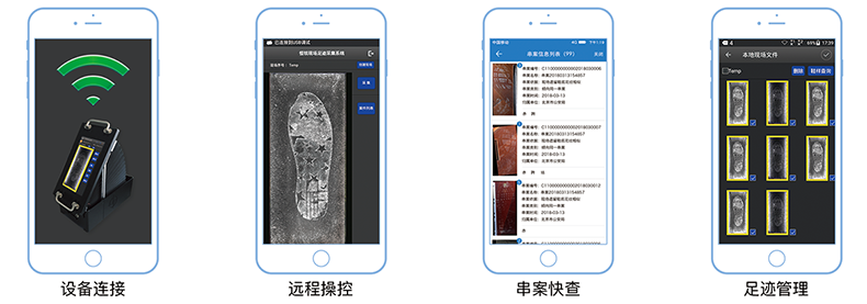現場足跡采集系統手機端遠程控制,可遠程控制采集設備進行足跡采集,對于現場疑難位置的足跡,設備擺放之后不方便對采集儀進行操作的情況,可進行遠程控制操作。同時,可以將采集的足跡下載到APP所在手機的相冊中,用于后續的業務應用。